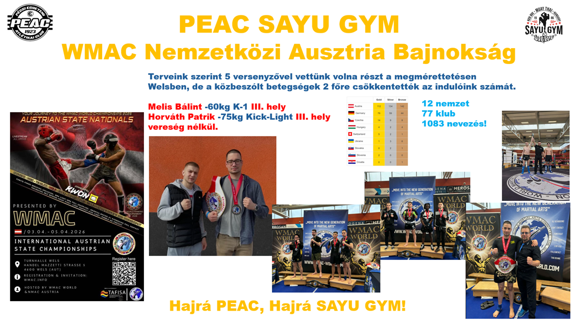 Nem úgy alakult a hétvégi verseny, ahogy azt eredetileg elterveztük, mivel három versenyzőnk betegség miatt kénytelen volt visszalépni. A PEAC színeit végül Melis Bálint és Horváth Patrik képviselte, akik kiválóan helytálltak a megmérettetésen. Bár aranyérem ezúttal nem született, az események utólagos elemzése alapján elmondhatjuk: minden mérkőzésünk győzelemmel zárult.